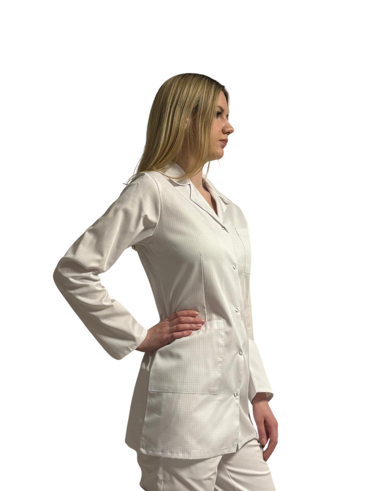 Fartuch damski medyczny- laboratoryjny z kołnierzem - biały