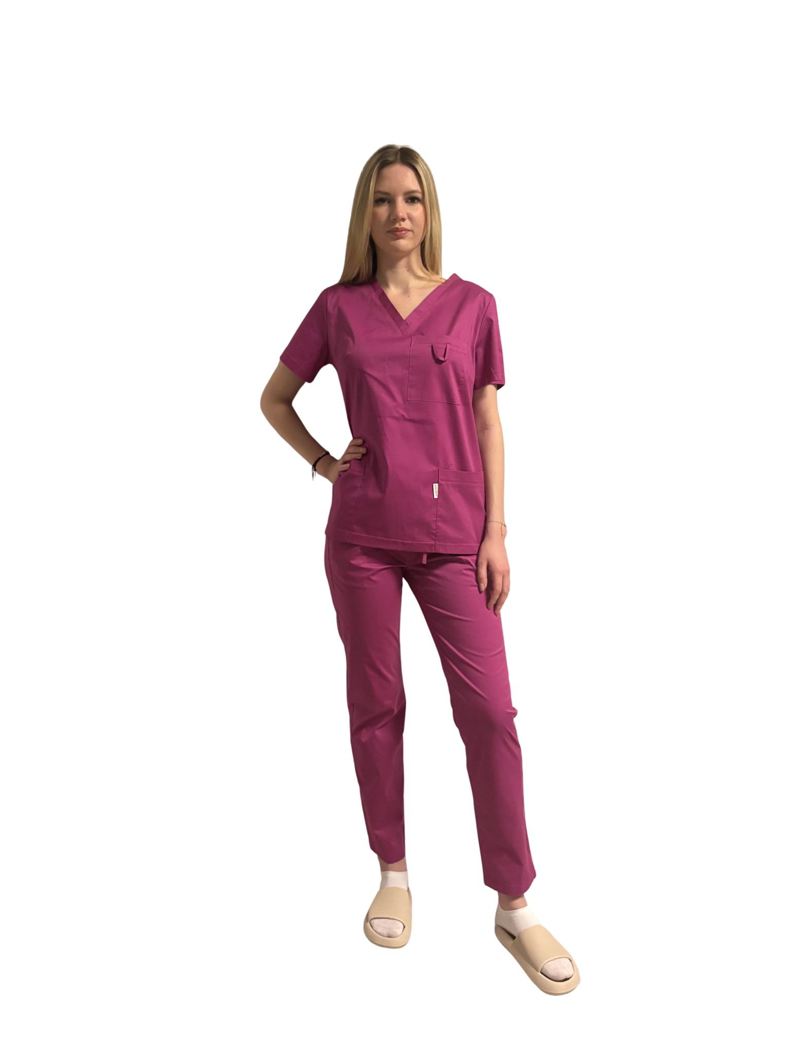 Zestaw medyczny - Scrubs, bluza + spodnie, kolor malinowy